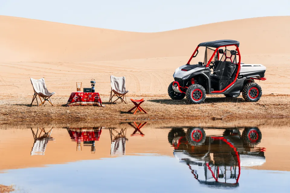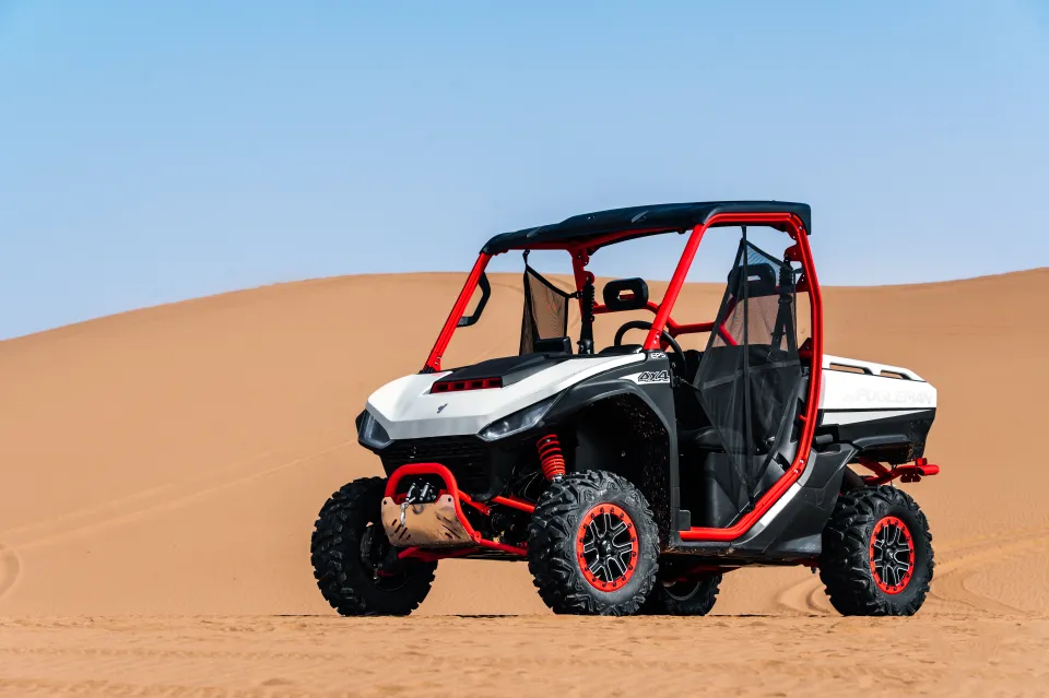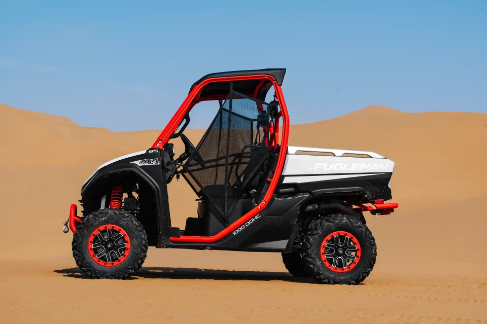 Le châssis tubulaire haute résistance du Fugleman UT10 lui confère une rigidité remarquable et une durabilité à toute épreuve. Son moteur bicylindre de 1000 cm³ délivre une puissance constante et un couple généreux, idéal pour le transport de charge et le franchissement d’obstacles en terrain varié. La transmission automatique CVT, associée aux différentiels verrouillables, permet une adaptation instantanée aux conditions du sol. Le système de direction assistée électrique EPS garantit précision et confort, tandis que les suspensions indépendantes K-Man assurent une excellente stabilité, même en pleine charge.