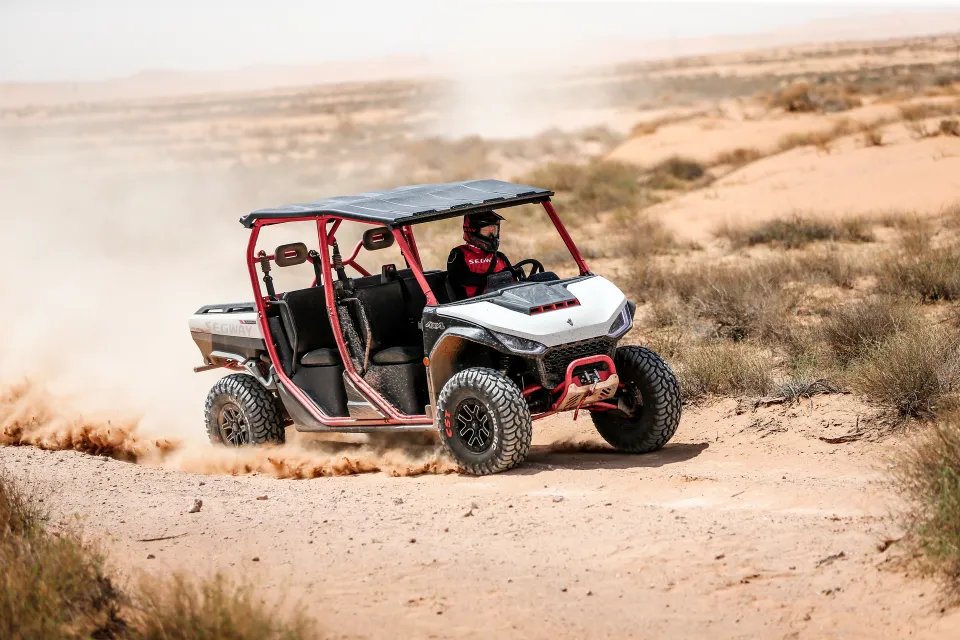 Le UT10 CREW reprend la base mécanique du UT10 standard : un moteur bicylindre 1000 cm³ fiable et puissant, une transmission automatique CVT et une structure renforcée pour supporter de lourdes charges. Sa particularité réside dans son empattement allongé, qui permet d’accueillir deux rangées de sièges tout en conservant la benne utilitaire à l’arrière.