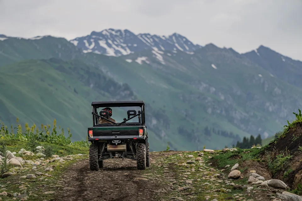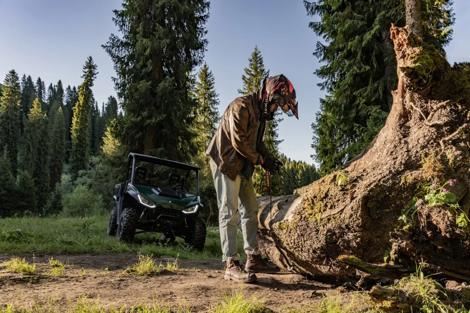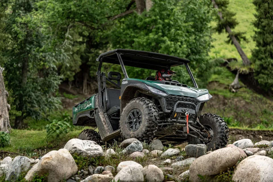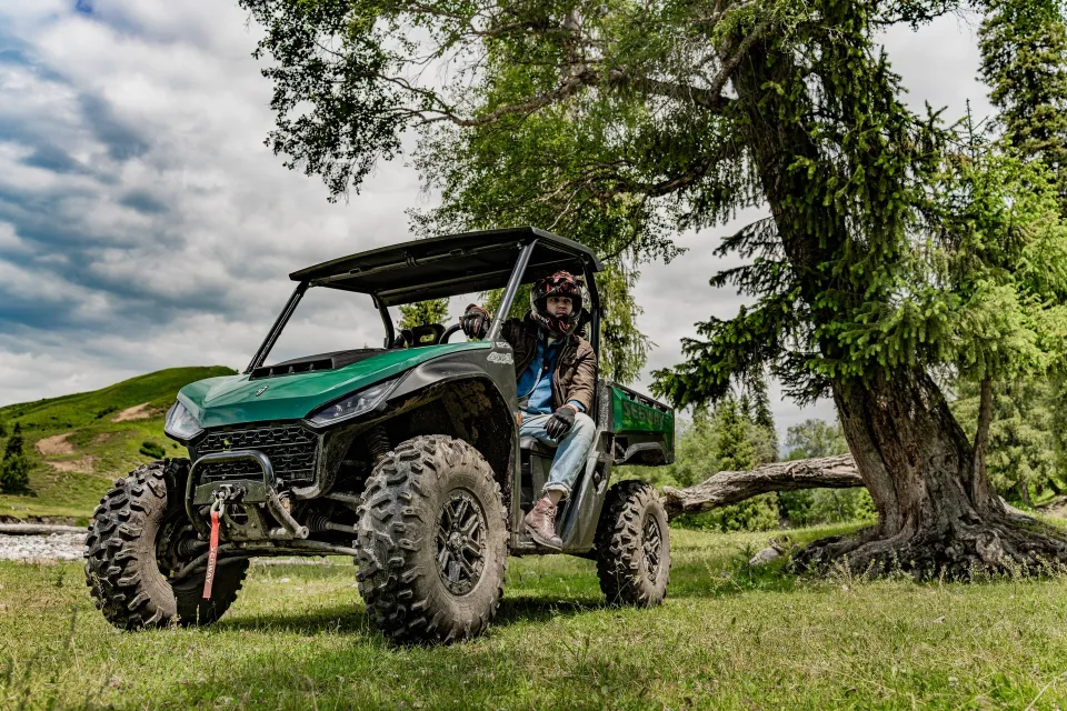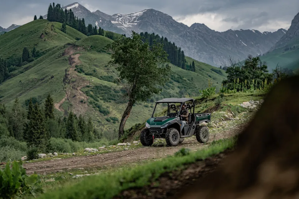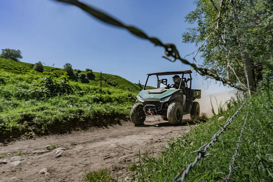 Le châssis tubulaire en acier (chrome-molybdène selon fiches) assure rigidité et longévité. La transmission automatique CVT facilite les manœuvres basse vitesse et les phases de traction, tandis que les blocages de différentiels aident à franchir boue, ornières et côtes chargées. La direction assistée (EPS) réglable et les suspensions indépendantes à grand débattement améliorent la précision et le confort, même avec la benne chargée. L’interface embarquée regroupe les informations essentielles et peut intégrer une connectivité smartphone pour la télémétrie et les alertes (selon version/pays).
